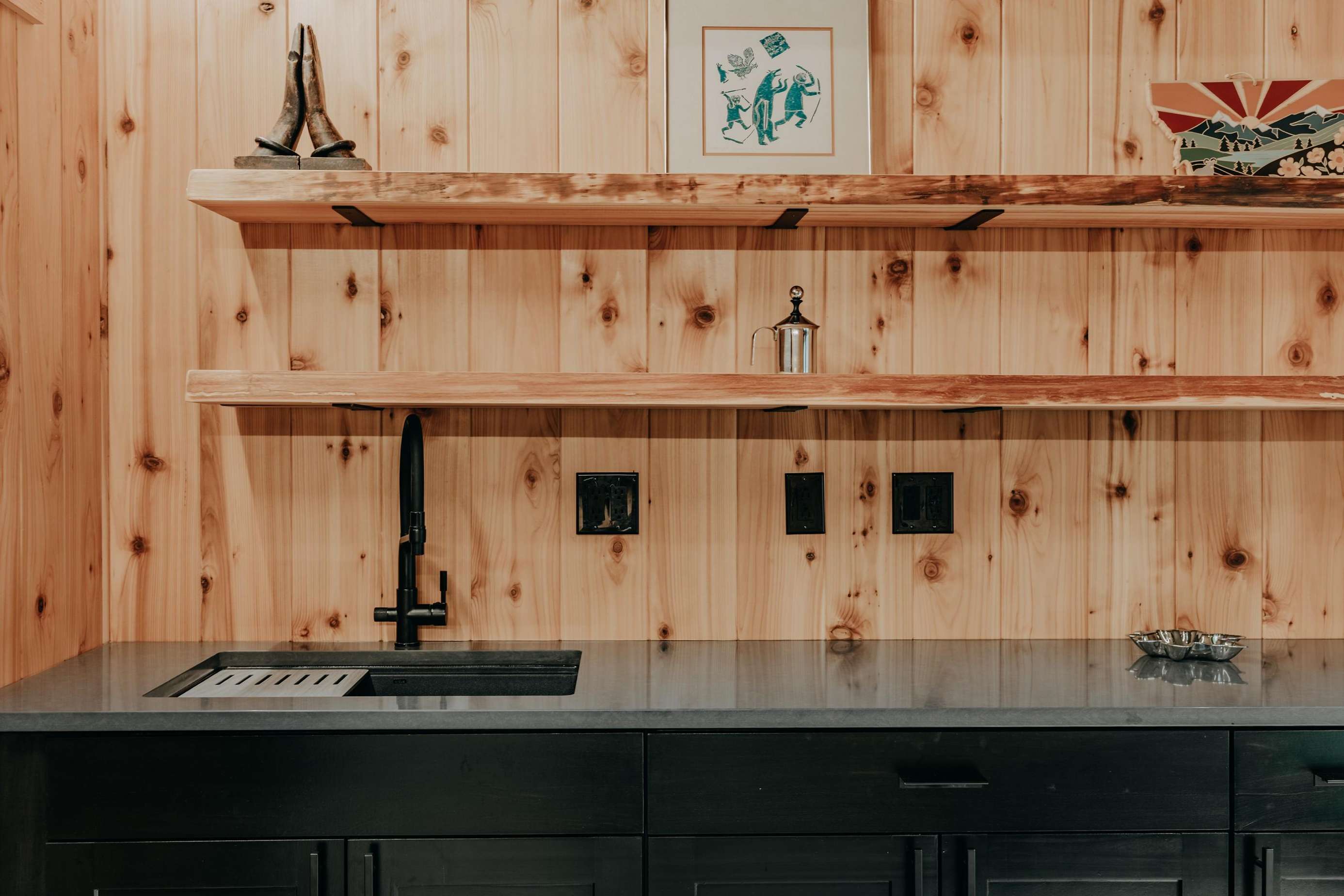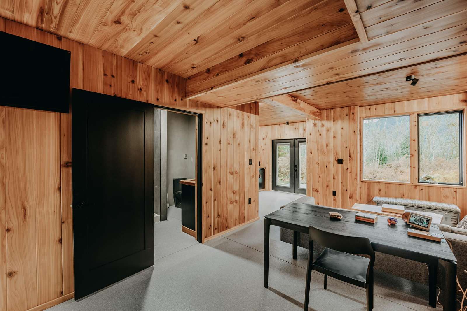 “AMAZING” best describes this new and magnificent ultra-chic 3-bedroom, 3-bath family vacation home perched on a hilltop with unbelievable mountain views! Beginning with Shou Sugi Ban siding, this architect-designed cabin is 21st Century all the way. This mod home features a fantastic floorplan with opposing bedrooms in the main part of the house…each with its own ensuite bath, for the ultimate in privacy and functionality, plus an additional main suite bedroom that is accessed from behind the cabin. This bedroom exudes privacy and features its own lounging area, a wet bar with a refrigerator, 1-full sized bed, and an ensuite tiled ¾-bath with upscale countertops and fixtures that lend a cabin-in-the-woods, yet luxurious feel. This cabin is perfectly set up for three couples! Upon entering the main part of the house, you’ll be delighted by the plank-style flooring and birch and maplewood paneling throughout. The galley-style kitchen has many hidden features, including a stealth Miele refrigerator/freezer and drawer-style dishwasher. The stealth induction range blends seamlessly under Dekton countertops (spoiler alert: the range is located right under the fan hood!), a built-in Miele oven, an Insta Hot water dispenser, and a combined pantry and laundry cubby featuring a large capacity stack washer and dryer. Inspired by the mountain views offered from the kitchen window, it’s an absolute culinary delight! Stepping into the large open living /dining room area, you’ll discover floor-to-ceiling windows offering breathtaking southwesterly views of the North Cascades. There’s also a dining table with seating for four and a large and comfy couch for taking in nature’s splendor…all accompanied by a modern Morse wood-burning fireplace (firewood provided). Stepping out of the living room and into the west wing bedroom reveals 1-queen-sized bed and an ensuite split ¾-bath, replete with a tiled rain shower. Stepping out of the living room and into the east wing bedroom reveals 1-queen-sized bed and an ensuite ¾-bath…also with a tiled rain shower. A heat pump unit provides both heat and air conditioning throughout, while a backup generator supplies ample power during infrequent power outages. An EV charger (Nema 50 + 110v) will keep your electric vehicle charged and happy. There’s no wimpy wifi here…this cabin is equipped with Starlink (speeds up to 120 GBPS) for endless streaming, zoom calls, or just keeping up with friends and family.